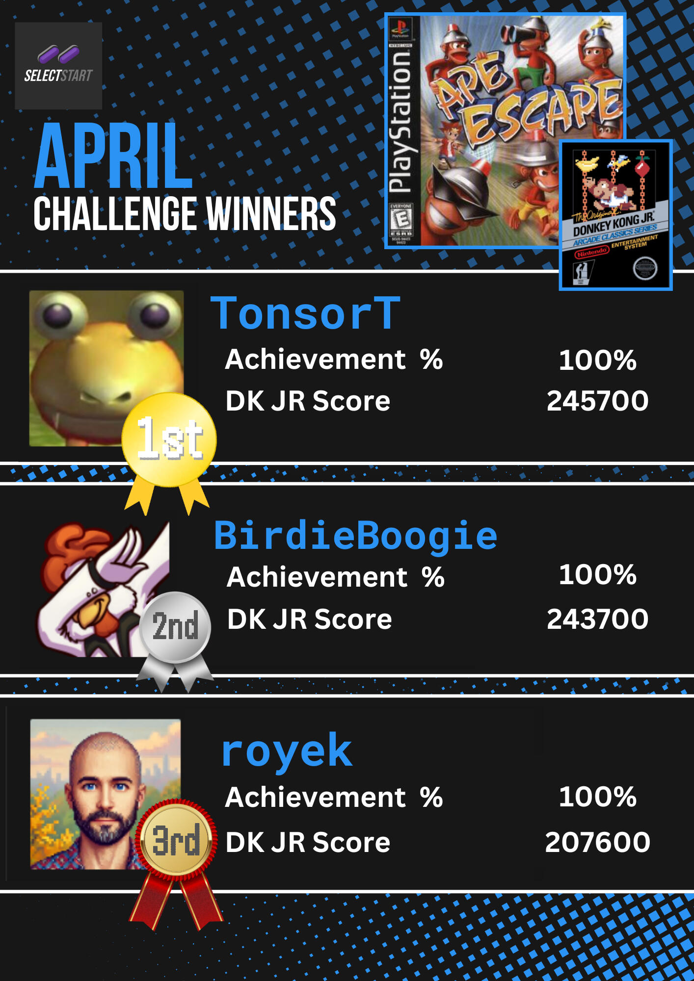 Welcome to Select Start, a retro gaming community where players compete in monthly challenges to test their skills. From unlocking achievements to speed-running classics, we bring together gamers who love a bit of friendly competition. Join us to relive the golden age of gaming and prove your mastery.